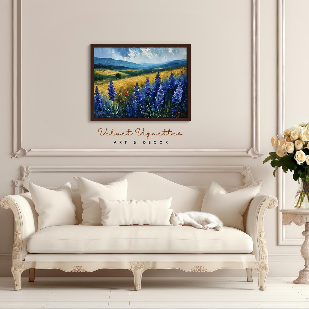 Blue Lupine Field Landscape Art Print | Mountain Meadow Wildflowers Digital Download | Serene Nature Wall Decor for Home & Office – Velvet Vignettes